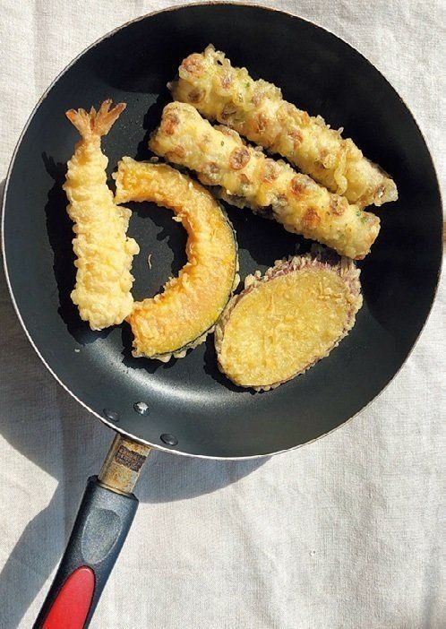 天ぷらはペーパータオルにのせて余分な油をオフ。温め方はフライパンで「弱火で片面5分ずつ」。サクサク食感に♪