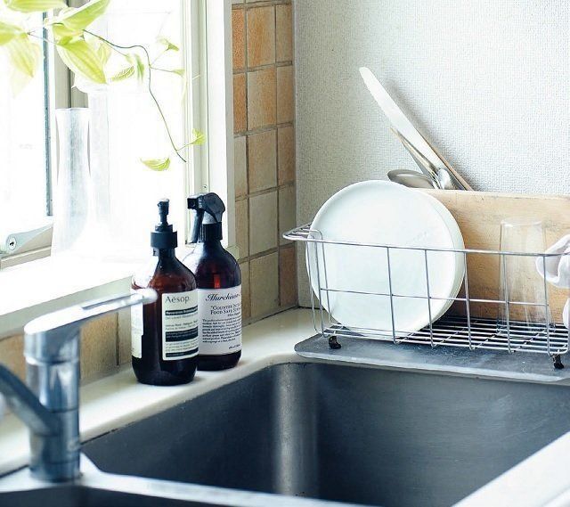 多種多様な菌が多いキッチンの食器洗い用スポンジは、実はトイレよりも菌が多い場所。使用後に食器用洗剤で洗い、水まわり以外の所に干し場をつくって乾かすことで、菌の発生を抑制します。