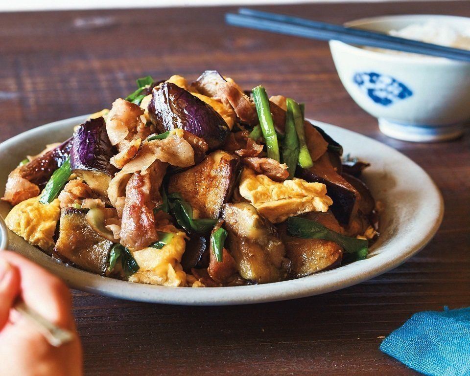 なすと豚バラのにらたまスタミナ炒め