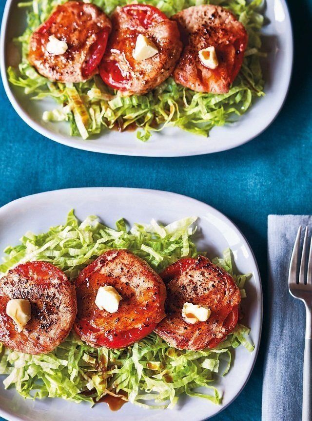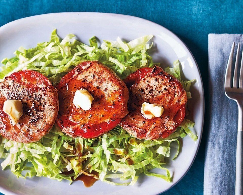 続いては、豚肉と合わせた一品をご紹介します。トマトに豚のロース薄切り肉を巻いてステーキ仕様に。一口噛めば、トマトの旨味が口いっぱいに広がります。