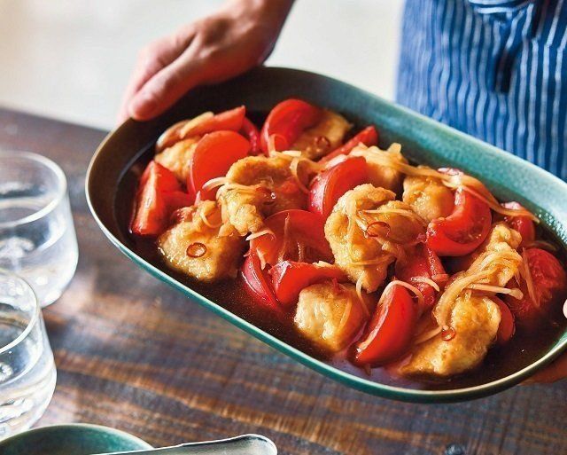 焼いた鶏胸肉をトマトで作った南蛮だれに漬けるだけ。甘みと酸味のバランスがほどよい爽やかなおかずの出来上がり。
