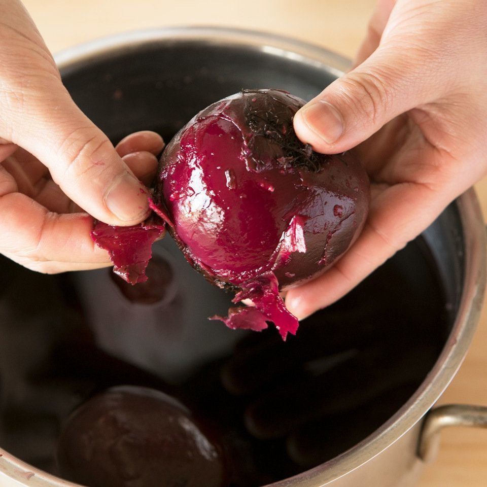 そこは我慢して(笑)。次回にはもっと短時間な方法もご紹介しますが、ビーツは「丸ごとゆでる」ということを覚えておくと、その後が展開しやすいんです。
