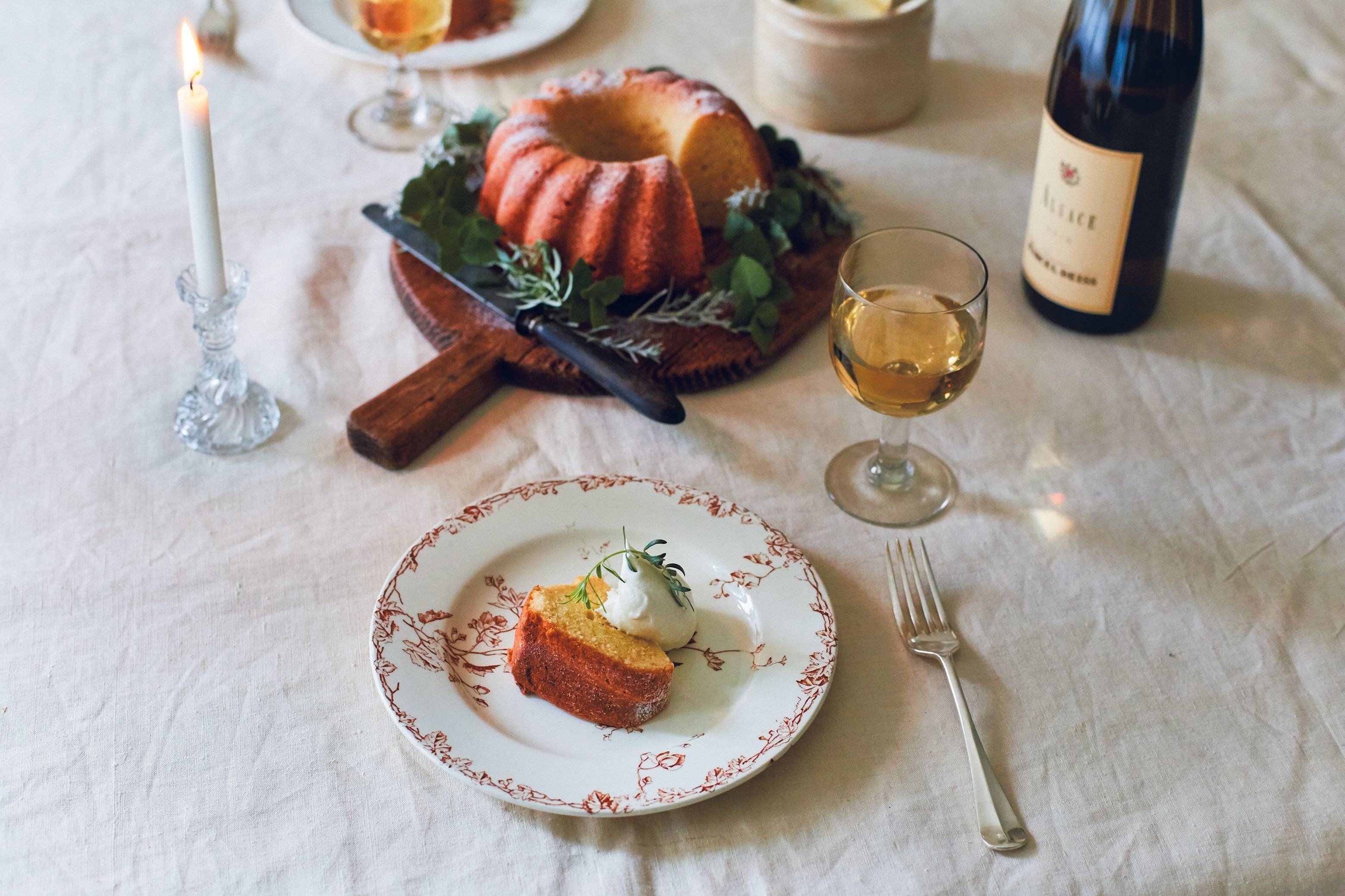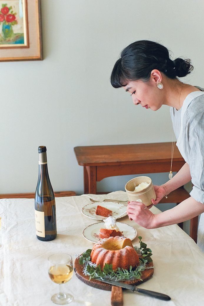 わが家で人を招いて食事をするときも、デザートタイムはバターケーキとワインでおもてなしをしています。食後には重たいと思われがちなお菓子も、お酒と一緒だと意外と食べられますし、コーヒーのように「これで締め」といった感じがないので、会話がはずむんですよ。