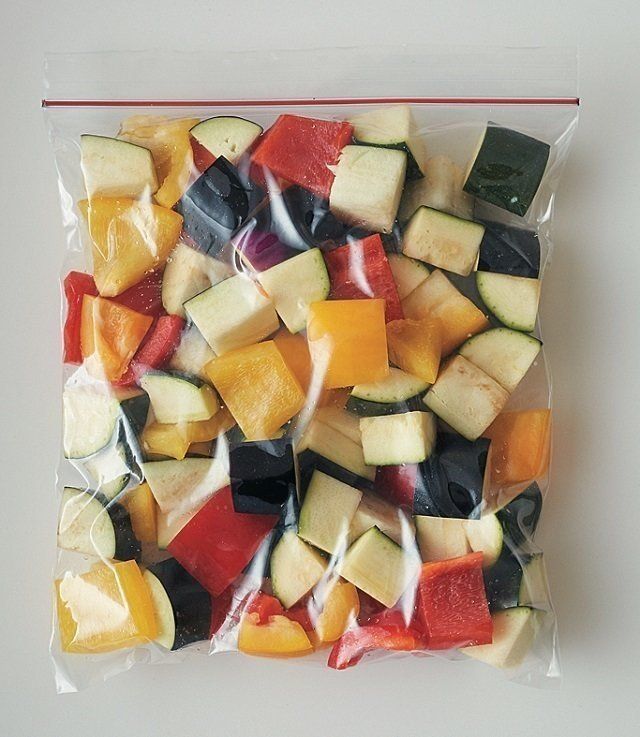 野菜は、料理に使うときの形に切ったら、ファスナーつき冷凍用保存袋に入れる。