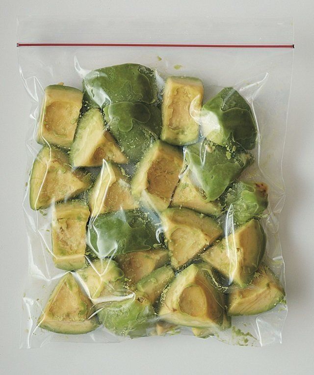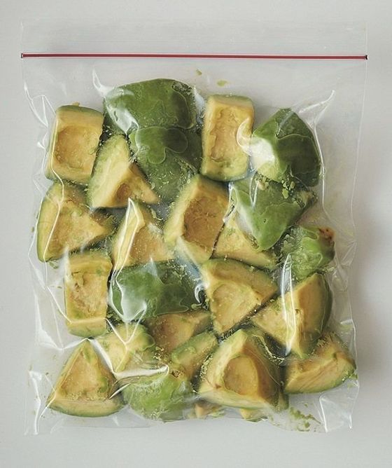 縦半分に切り、種を取って皮をむく。さらに縦半分に切ったあと、横に3~4等分に切り、レモンの絞り汁約大さじ1をふってからめる。熟して柔らかいものは、袋を密閉するときに形がくずれてしまうので、硬めのものが冷凍向き。