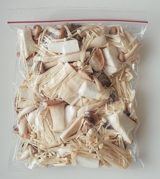 しめじは根元を切り、食べやすくほぐす。えのきだけは根元を切り、半分の長さに切ってほぐす。エリンギは根元を少し切り落として半分の長さに切ったあと、縦に4~6等分に切る。数種類のきのこを混ぜて冷凍しておくと便利。