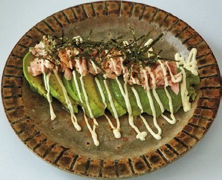 アボカド2個は食べやすく切り、軽く油をきったツナ1缶をのせる。めんつゆ、好みでマヨネーズ各少々をかけ、刻みのり適量を散らす。