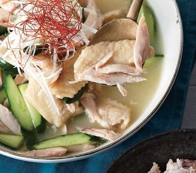 鶏のうまみがたっぷりの「チョゲタン」。「チョ」は酢、「ゲ」は鶏肉、「タン」は汁の意味。韓国では夏の元気の源!