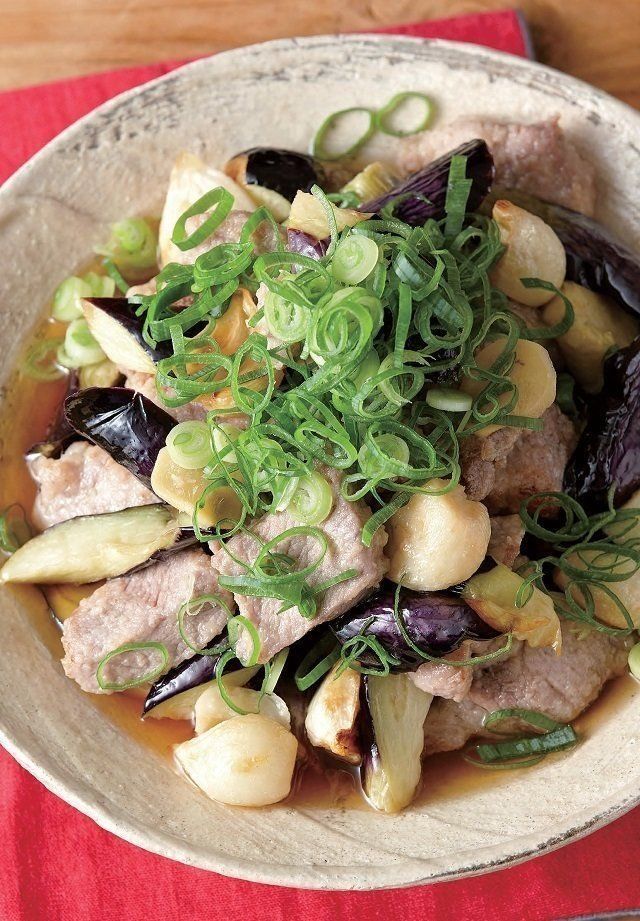 スタミナ食材の代表格「にんにく」と夏に人気の野菜「なす」をフライパンに入れ、揚げ焼きに!そこに豚肉も投入し、こんがり焼いていきます。最後に、南蛮ダレに漬ければ完成です。