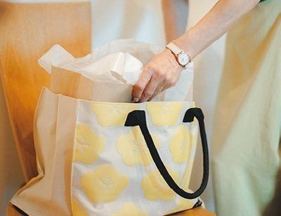 生ゴミは持ち運びしやすい布バッグに集めて小まめに捨てます。書斎では紙袋を使い捨てゴミ箱に。手入れ不要でゴミ出しもスムーズ。