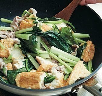 豚こま×厚揚げ×小松菜のしょうゆ炒め