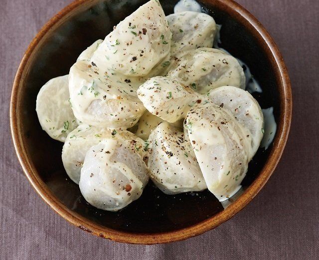 里いもは皮をむき、大きければ半分に切って耐熱皿にのせて、ラップを掛け、電子レンジで8分ほど加熱する(途中、上下を返す)。ソースの材料を混ぜ合わせ、里いもを加えてあえる。器に盛り、黒こしょう適量をふる。