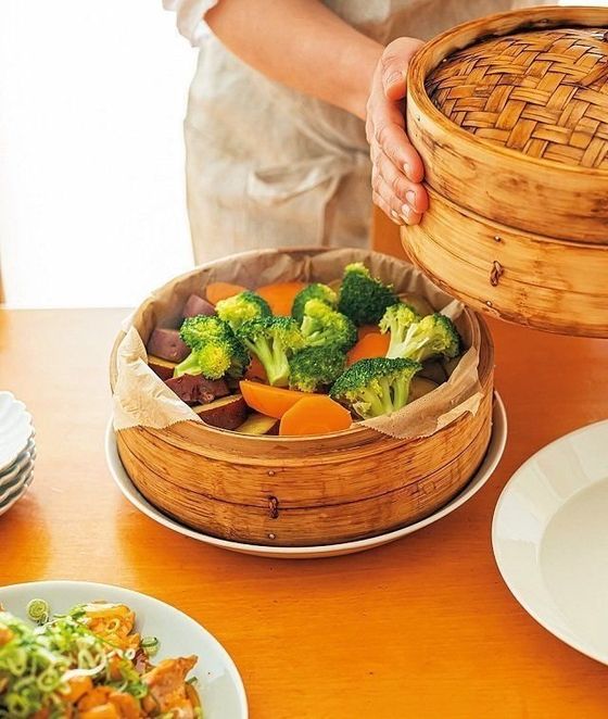 開けたときに湯気がふわ~っと上がり、家族の「わ~っ」という歓声が。切っただけの野菜、12個80円のチルドシュウマイが、〝せいろマジック〞でごちそうに。