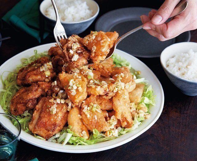 鶏から揚げと一緒にカリッと揚げて。プラスねぎだれで食欲MAX。