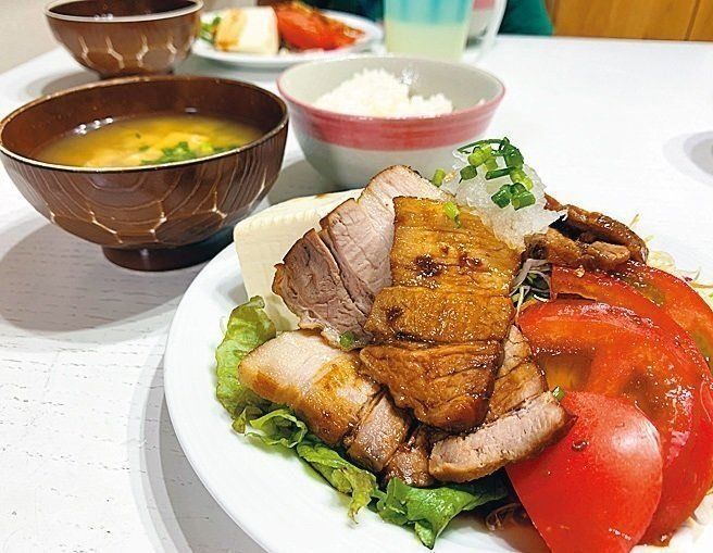ほったらかしチャーシュウ、野菜と豆腐のサラダ、みそ汁