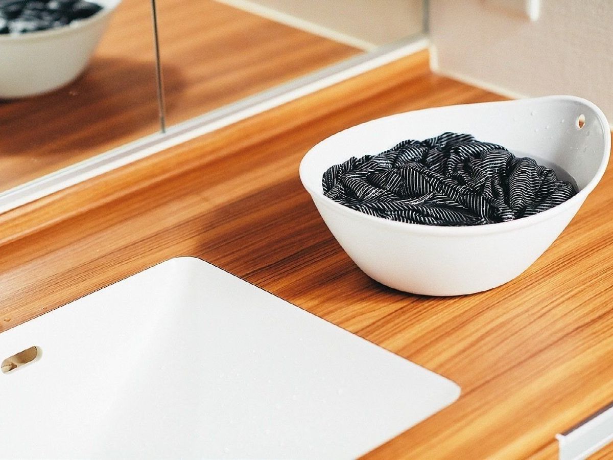 においのする服、黄ばんだ服はつけ置きが効果的。入浴前に40~50℃の湯に酸素系漂白剤を溶かしてつける→お風呂から出たら洗濯機で洗う→干して終了。