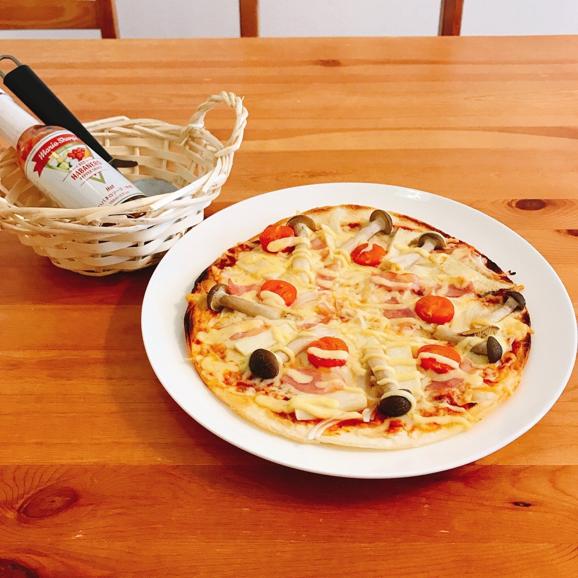残ってしまった野菜の消費におすすめ、野菜たっぷりクリスピーピザです。きのこ類のほかに、ナスやピーマンなどお好みの野菜を加えても◎。薄手の生地なので、手軽に食べられますよ。