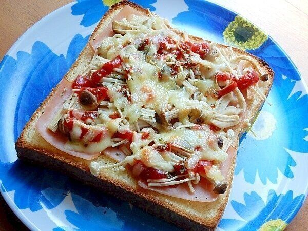 焼く間に片付け!ハムを敷いて❤きのこ2種トースト♪