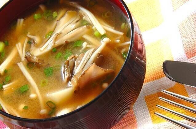 「きのこのみそクリームスープ」は、しめじとえのきを使ってつくるみそクリームスープです。コクのあるスープで、きのこをおいしく食べられますよ。きのこをたくさん食べたいという人にもおすすめのメニューです!