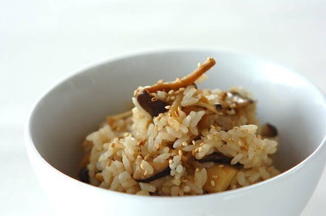 きのこご飯は、きのこのうま味を存分に楽しめる一品。数種類のきのこを組み合わせることで、味わい深く香りが豊かな炊き込みご飯になりますよ。炊飯器に調味料、きのこを加えて炊くだけなので簡単につくれるのもうれしいポイントです。