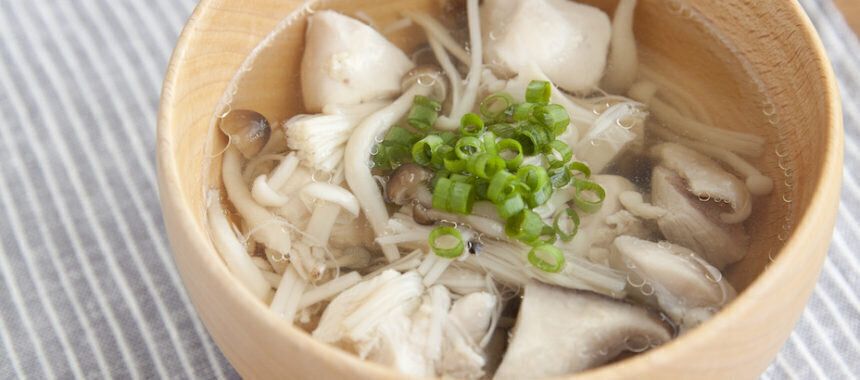 だし汁なしでつくれる塩きのこ汁のレシピです。レシピでは薄口しょうゆを使用していますが、濃口しょうゆを使っても◎。きのこのうま味がたっぷりで、疲れた体を癒してくれるかも。