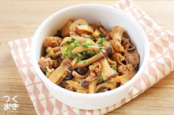 ボリューミーでコスパもいい、豚肉ときのこの炒め物レシピ。オイスターソースでコクとうま味たっぷりに味つけしています。10分程度でつくれるので、いそがしい日やお弁当のおかずにもぴったりです。