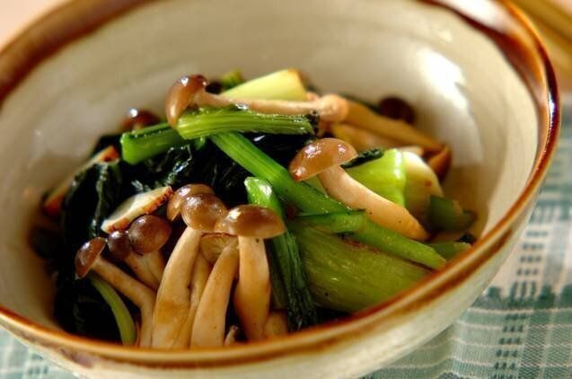 ニンニク香る!しゃっきり小松菜とキノコのバターしょうゆ炒め
