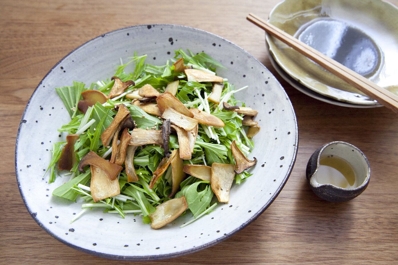 新鮮なマッシュルームでつくる「マッシュルームの和風サラダ」。生のマッシュルームならではの軽やかな食感を楽しむことができますよ。このまま食べるもよし、パンに挟むのもよし、アレンジもしやすいメニューです。