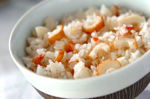 今の時期にぴったりな秋の食材の代表きのこと、ちくわを合わせる炊き込みご飯。きのこの香りが食欲をそそり、何杯でも食べられそうですね。きのこのうま味が感じられるご飯です。