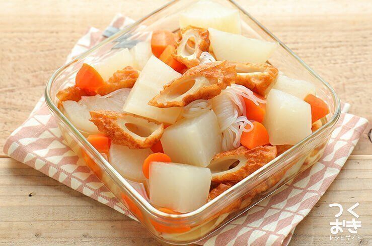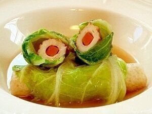 ちくわの穴ににんじんを入れ、白菜を巻きつけた彩り豊かなレシピ。カットした断面もきれいです。野菜が少ないおでんに入れれば、手軽に栄養をプラスできるのもいいですね。