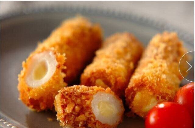 ちくわの穴にチーズをたっぷりつめた、チーズちくわの磯辺揚げ。濃厚なチーズとふわっとしたちくわ、さらに青のりの磯の香りがよく合います。さめてもおいしく食べられますよ。