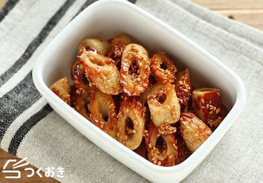 大人気のヤンニョムチキンにちくわをプラスしてボリュームアップした一品です。甘辛な味付けがちくわに絡み、チキン同様に食べ出したら止まらなくなること間違いなしです。