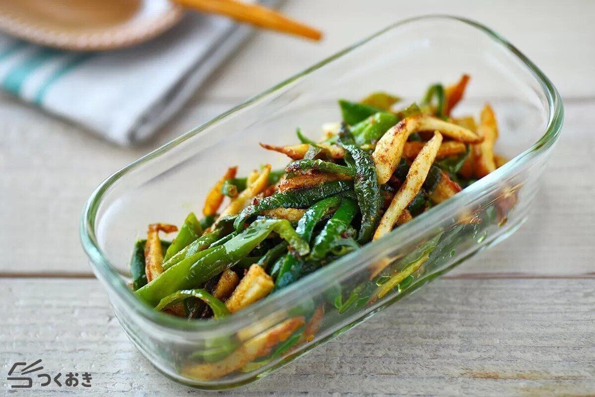 切って炒めるだけであっという間に完成する、ピーマンとちくわのカレーきんぴら。ちくわの甘みとピーマンの苦みが絶妙に絡み、カレーのコクとうま味がクセになる味わいです。