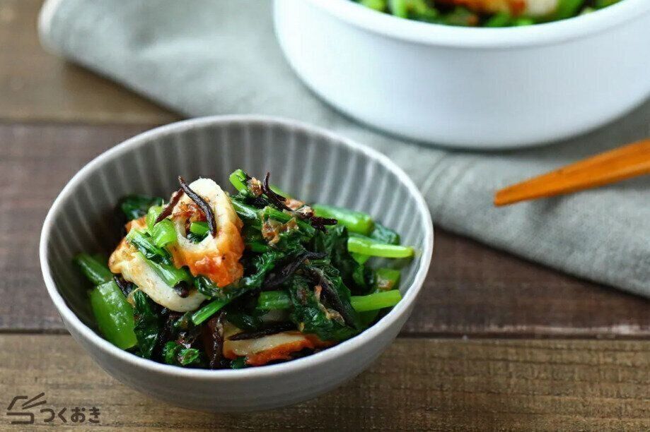ちくわと混ぜ合わせるだけなのに、簡単で絶品な副菜レシピです。サクラエビはフライパンで焦げないように炒ることで、香ばしい香りがひきたち、食欲をそそります。わさび醤油で味付けすることで、ほどよい辛味がアクセントになります。