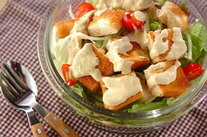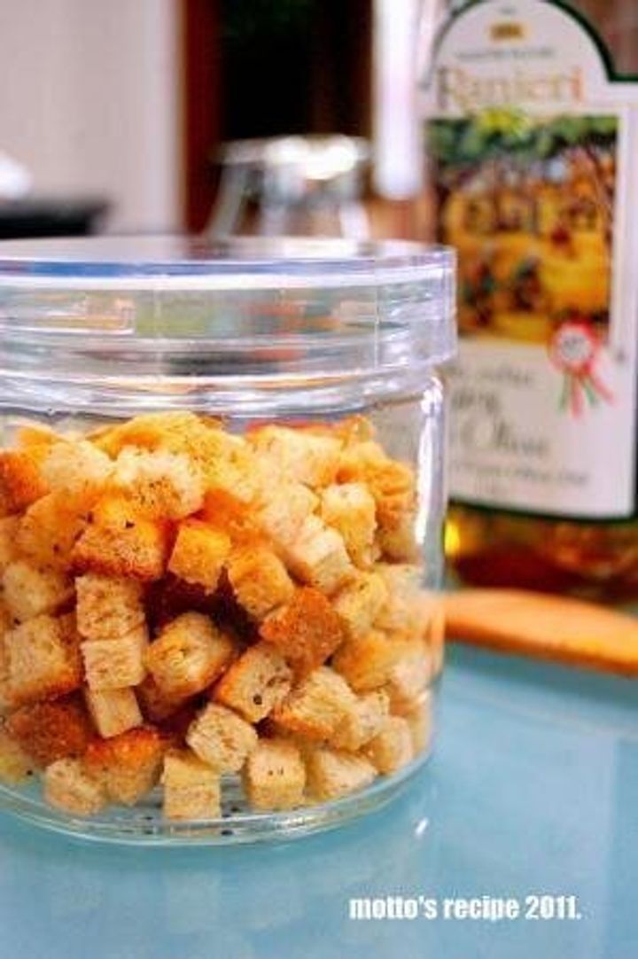 残った食パンで簡単クルトン♪サラダにおつまみに!