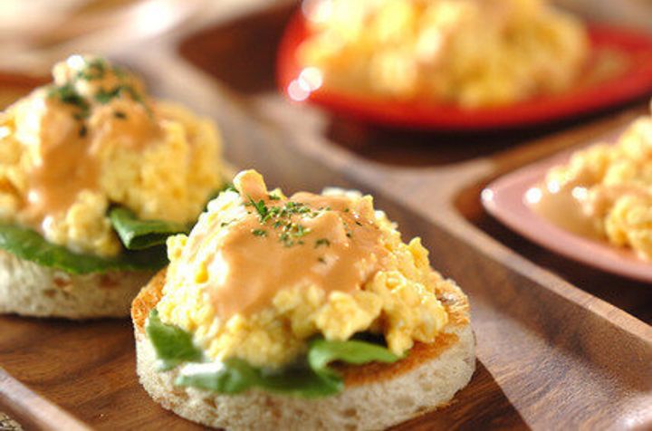 スクランブルエッグのオープンサンド♪~マヨソース添え~