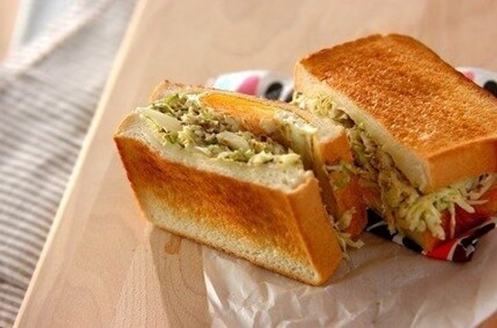 パリパリ食感のたくあんとツナを食パンではさんだサンドイッチです。甘みの強いたくあんを使うことで、おやつにピッタリな味わいに!具材を切って混ぜ合わせ、食パンにはさむだけと簡単につくれる一品です。