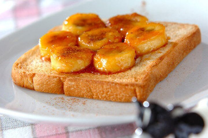 砂糖、水、バターでつくるキャラメルバナナは、ねっとりとした甘さで心も胃袋も満たしてくれますよ。カリカリにトーストしたパンの上にたっぷりと並べ、シナモンを振りかけて召し上がれ!