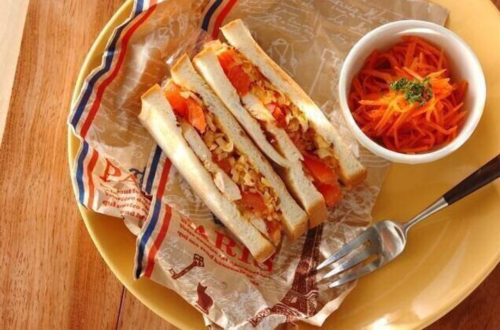 1年中食べられる水煮のたけのこを具材にした、サンドイッチです。たけのこの穂先はやわらかい食感、根元は歯応えのある食感になるためお好みで加えてください!普段と違ったサンドイッチを楽しみたい時にピッタリなレシピです。