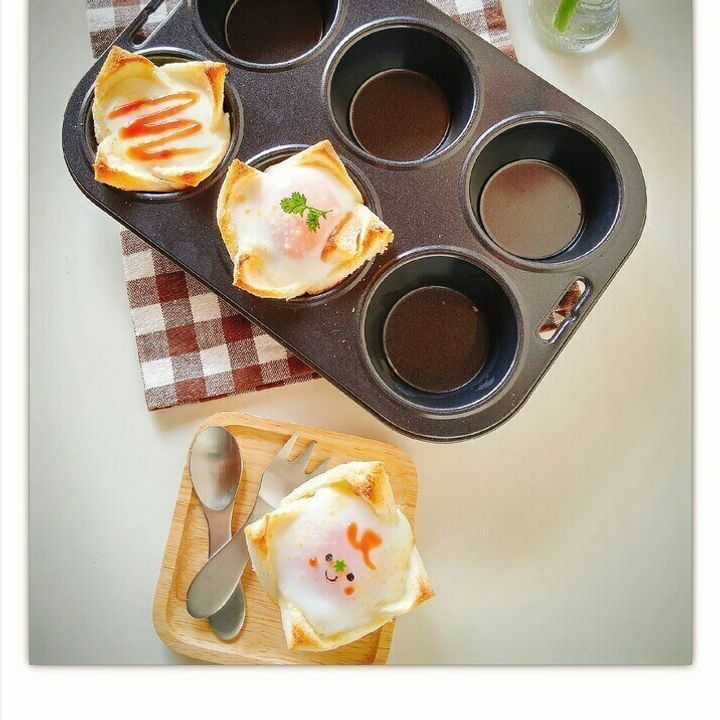 薄く伸ばした食パンをマフィンカップに入れ、卵といっしょにトースト。いつもの卵焼きトーストもカップ状にすればかわいらしく、子どもも喜びそうですね。ウインナーや粉チーズを加えてアレンジしても◎。