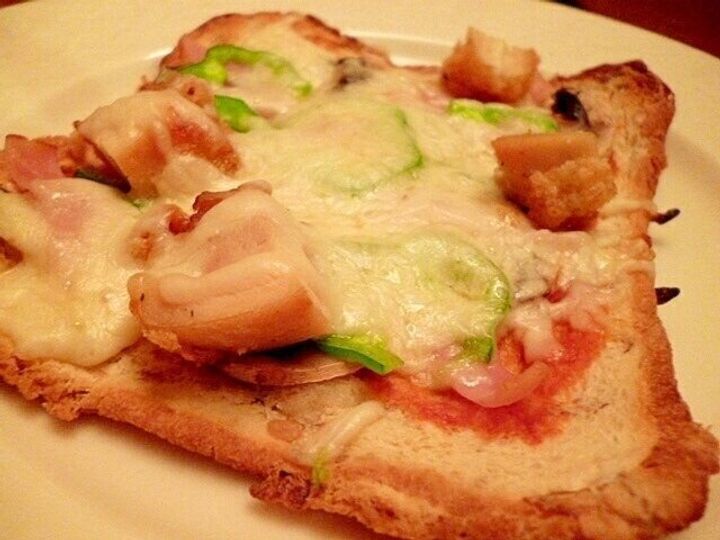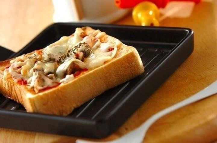 お好みの具材をのせて焼くだけ!塩気の強いチーズと、甘いケチャップのハーモニーが絶品のピザトーストレシピです。食パンは薄めで耳ありのものを使うと、サクサクカリカリの食感が楽しめておすすめですよ。