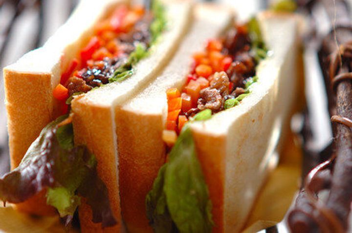 色鮮やかな見た目が食欲をそそる、焼肉サンドのレシピ。お肉の下味に甘酒を加えることで、お肉がやわらかくやさしい味に仕上がります。ジューシーな牛肉とピリ辛のキムチは相性バツグン。食パンはしっかりめにトーストするのがおいしくなるポイントです。
