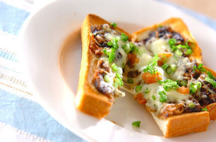 のりの佃煮、ツナの缶詰、梅干しなどの保存がきく食品を使って作る和のうま味ぎっしりの一品です。意外な組み合わせかもしれませんが相性はバッチリ!普通のトーストに飽きたら試してみては?
