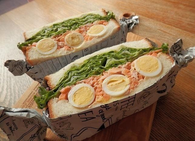 4.食パンをお好みでトーストし、3をのせてサンドして半分に切ったら完成♪