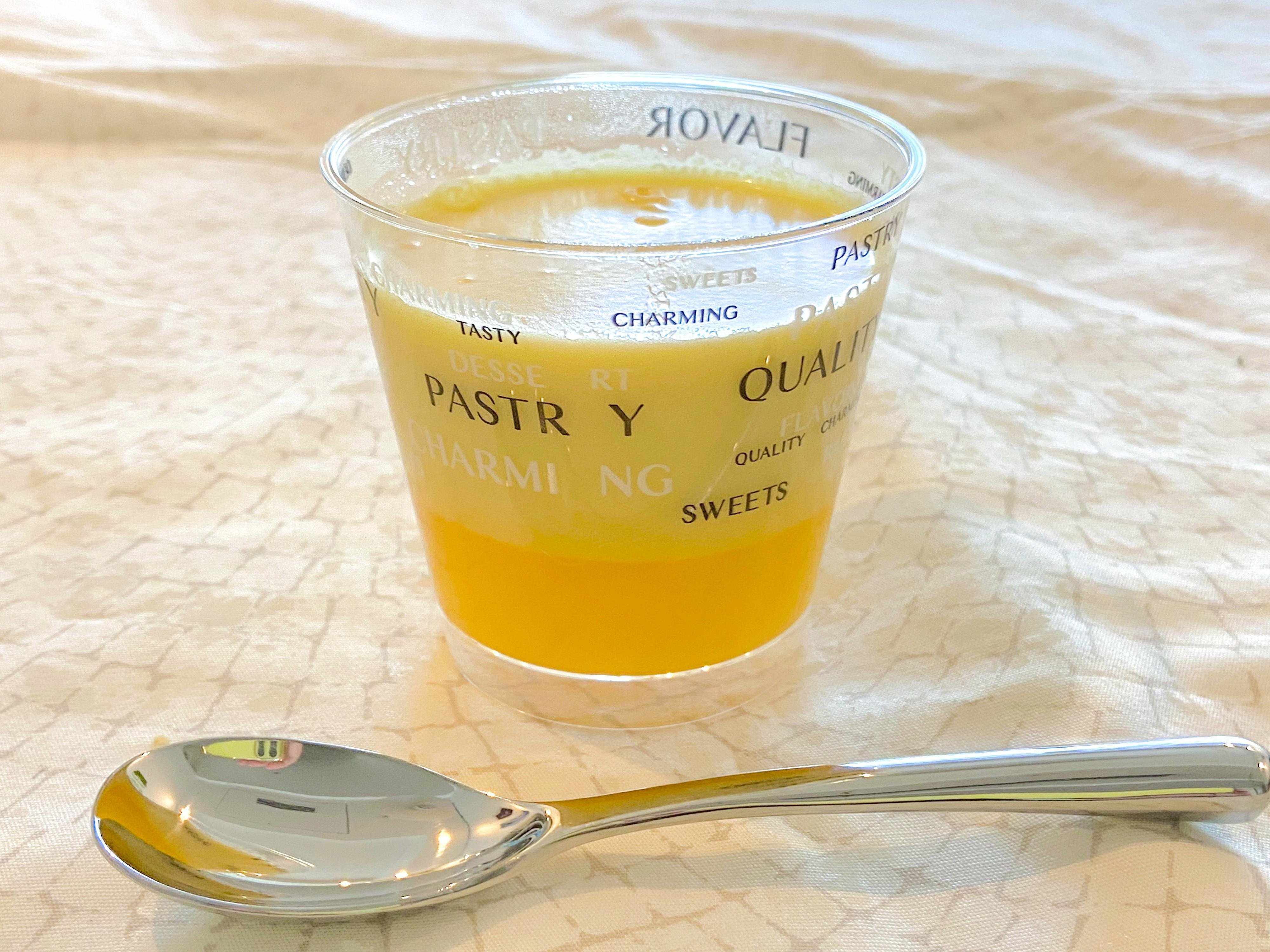 オレンジュジュースを使った場合、容器に入れると「プリンかな?」と思わせるような見た目です。
