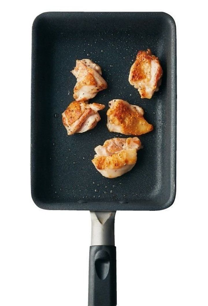 卵焼き器にサラダ油小さじ1/2を熱し、鶏肉を入れて両面を中火で2~3分ずつ焼き、完全に火を通す。