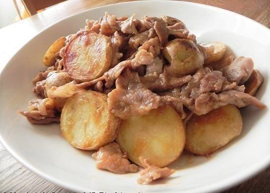 5.豚肉に火が通ったらじゃがいもを入れてさっと炒めます。★印の調味料を入れ、塩こしょうで味を整えて完成。