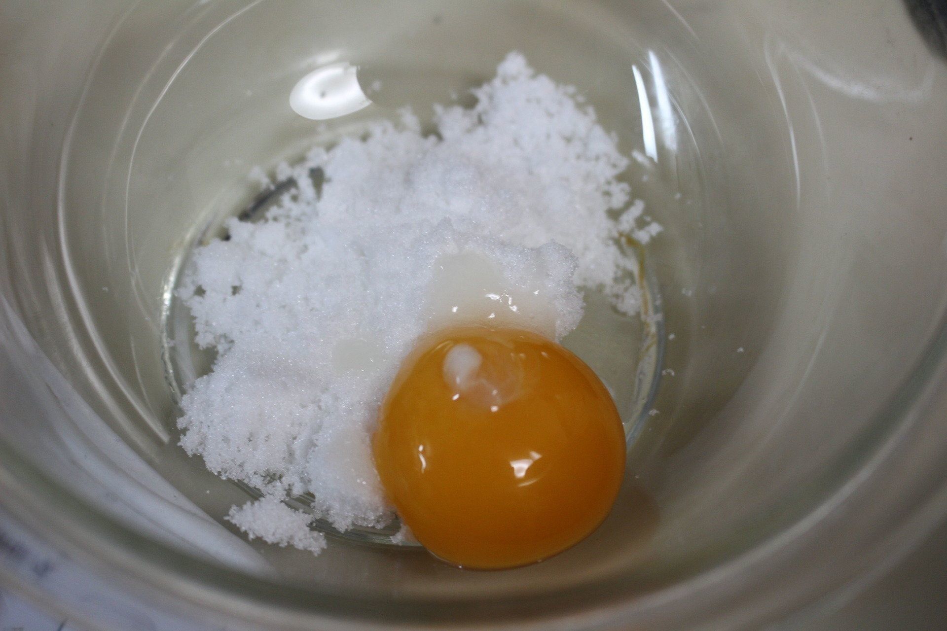 (1)卵黄1個とお砂糖30gをしっかり混ぜ合わせます。(お子さまの年齢が小さい場合20gでも!)