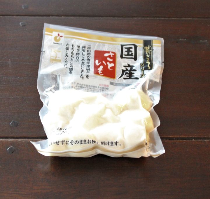 今まで下ごしらえのされたお野菜を買ったことがなかったのですが、スーパーが品薄なこともあり、今日は「下茹で済みの里芋」を使ってみました。