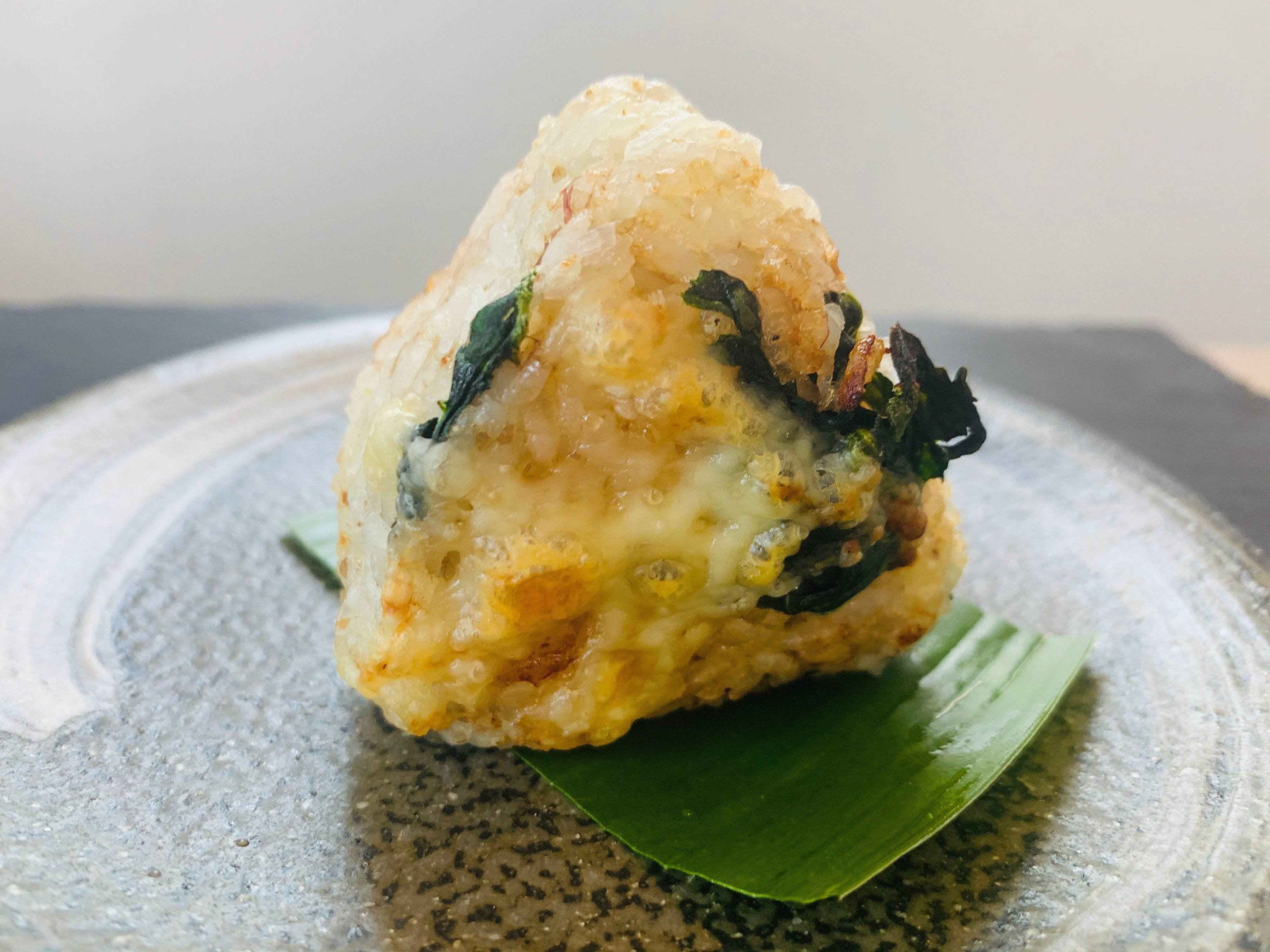 チーズとおかかと冷凍ほうれん草の焼きおにぎり
